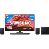 Je geniet van een helder mini-led beeld en ruimtelijk surround geluid met de Samsung 75″ Neo QLED QN90F 4K (2025) + Samsung HW-Q930F (2025) bundel.